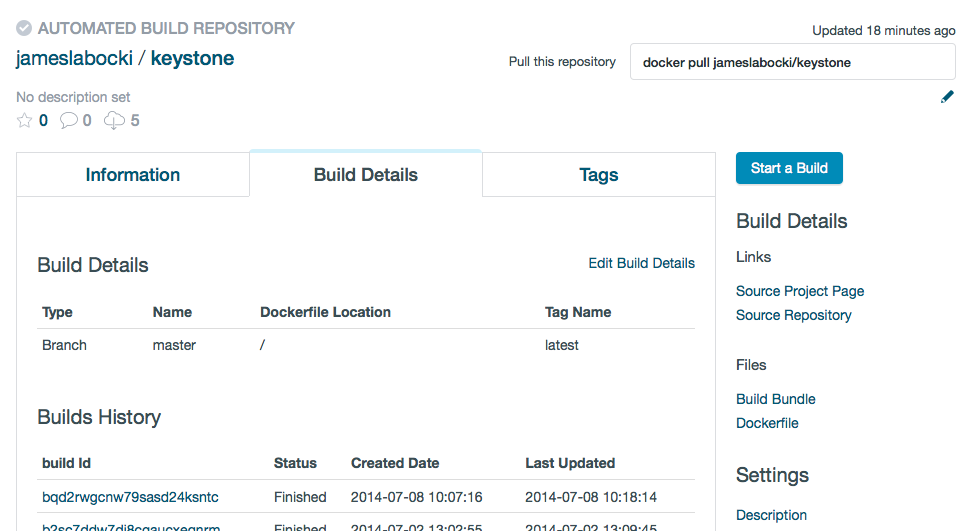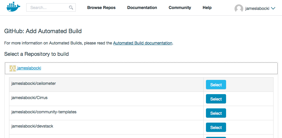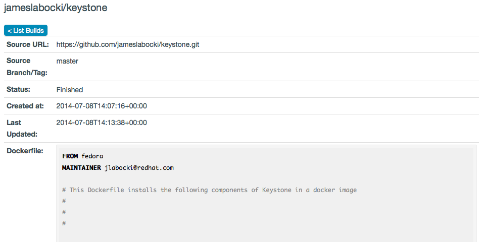 I decided to test Docker Hub’s automated build feature to see if I could have automated docker images created from a project relevant to Red Hat Cloud Infrastructure (RHCI), Red Hat’s private IaaS cloud solution. RHCI combines datacenter virtualization based on Red Hat Enterprise Virtualization (RHEV), scale out IaaS based on Red Hat Enterprise Linux OpenStack Platform (RHELOSP), and cloud management based on CloudForms. These come from the upstream communities of oVirt, OpenStack, and ManageIQ.