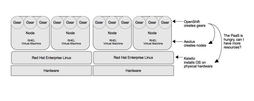 - OpenShift Enterprise, Red Hat’s PaaS, runs on Infrastructure (specifically, Red Hat Enterprise Linux).