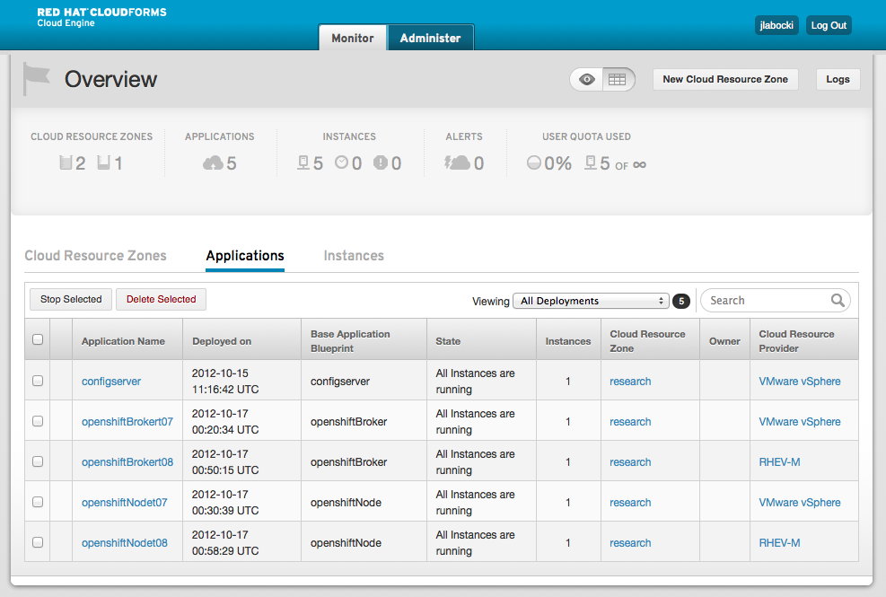- Red Hat CloudForms can deploy Application Blueprints to a number of underlying resource providers.